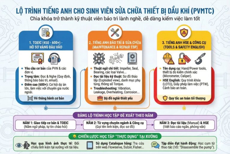 LỘ TRÌNH TIẾNG ANH CHO SINH VIÊN SỬA CHỮA THIẾT BỊ DẦU KHÍ (PVMTC)
