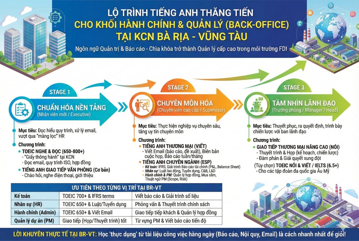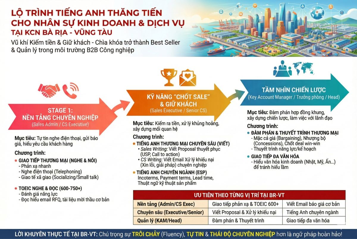 LỘ TRÌNH TIẾNG ANH THĂNG TIẾN CHO NHÂN SỰ KINH DOANH & DỊCH VỤ TẠI KCN BÀ RỊA – VŨNG TÀU
