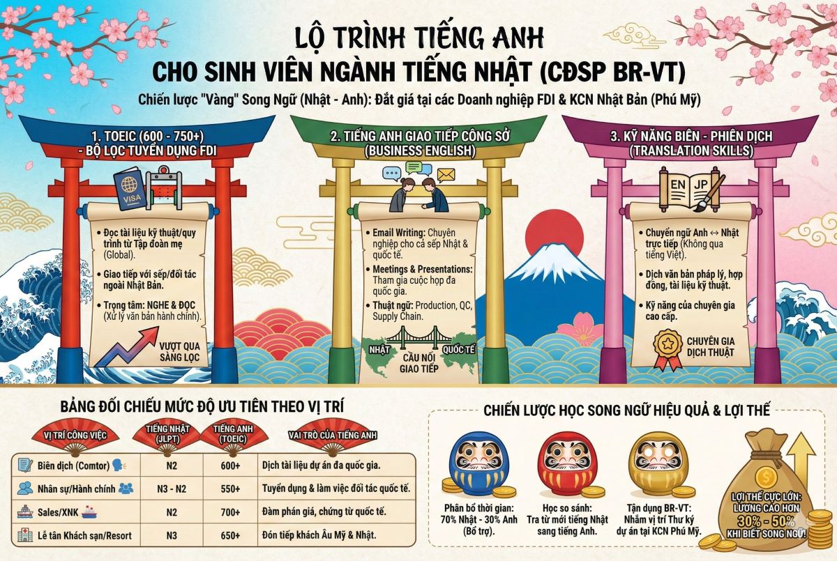 Việc kết hợp **Tiếng Nhật** và **Tiếng Anh** (song ngữ song hành) chính là chiến lược “vàng” giúp sinh viên […]