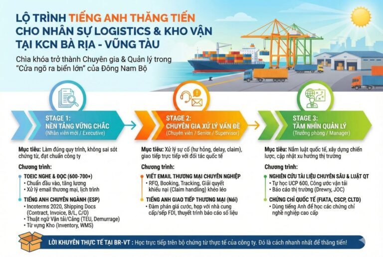LỘ TRÌNH TIẾNG ANH THĂNG TIẾN CHO NHÂN SỰ LOGISTICS & KHO VẬN TẠI KCN BÀ RỊA – VŨNG TÀU