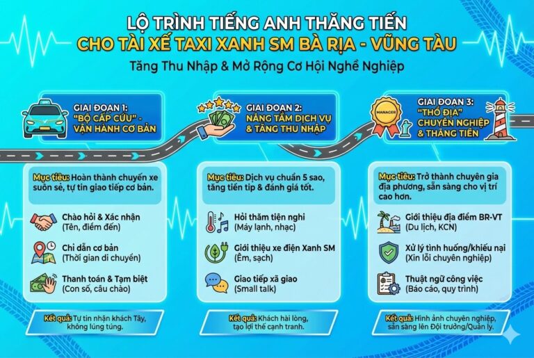 LỘ TRÌNH TIẾNG ANH THĂNG TIẾN CHO TÀI XẾ TAXI XANH SM BÀ RỊA – VŨNG TÀU