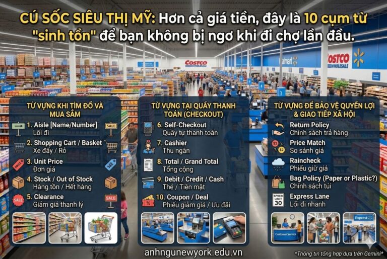 Chỉ còn vài tuần nữa là bay sang Mỹ định cư. Bạn lo lắng về SSN, về thẻ ngân hàng, về DMV… nhưng có một nỗi sợ “thầm kín” mà ít ai nói ra: Đi siêu thị Mỹ.